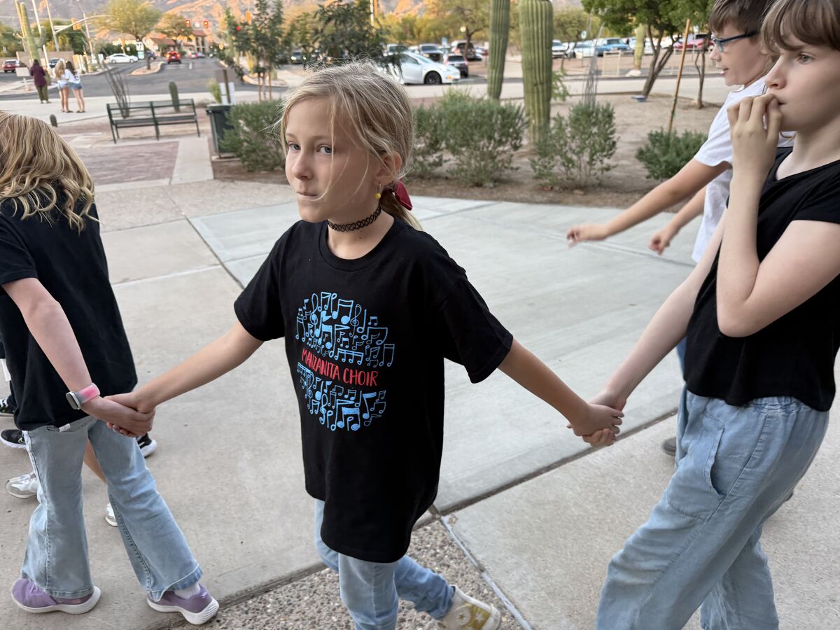 The choirs didn’t just sing together; they learned together. Mr. Evans and the high school choir students taught their younger peers a new song, “You Belong to Me,” featuring a lighthearted kazoo performance that had everyone smiling.